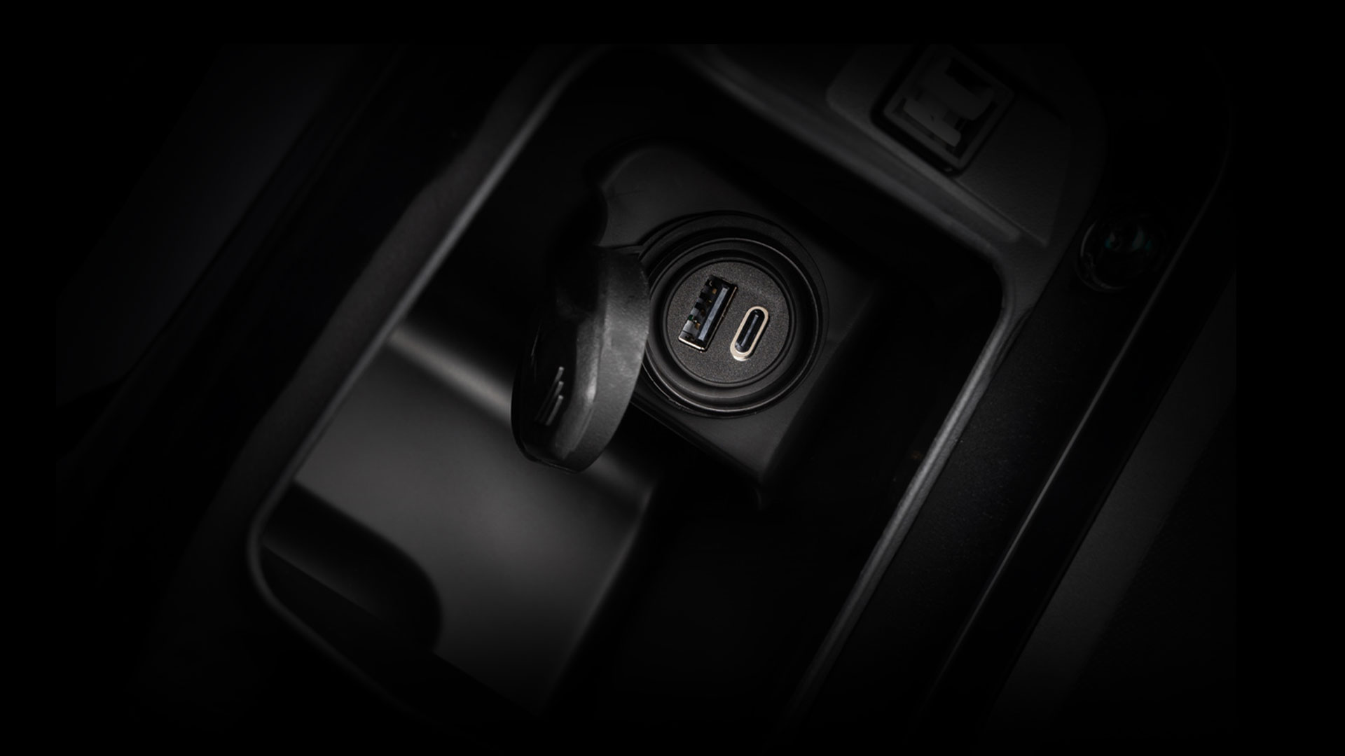 Το ντουλαπάκι στο εσωτερικό τμήμα της ποδιάς, με διπλή θύρα φόρτισης (USB Type A & Type-C), επιτρέπει τη φόρτιση συσκευών κατά τη διαδρομή.