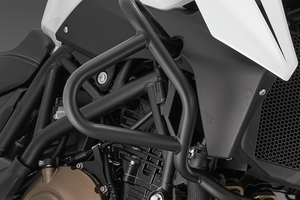 Τα προστατευτικά κάγκελα ανήκουν στον στάνταρ εξοπλισμό της SRT 700X, συμβάλλοντας στην προστασία των περιφερειακών μερών της μοτοσυκλέτας σε περίπτωση πτώσης.