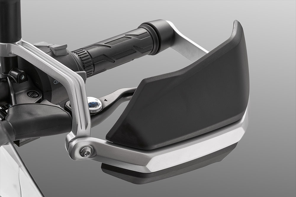 Οι προστατευτικές χούφτες της SRT 700X διαθέτουν αλουμινένια ενίσχυση και ανήκουν στον στάνταρ εξοπλισμό, προσφέροντας αυξημένη προστασία για τα χέρια του αναβάτη.
