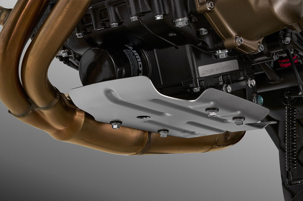 Η αλουμινένια ποδιά προστατεύει τον κινητήρα στα καίρια σημεία, ενώ τα 230 mm απόστασης από το έδαφος επιτρέπουν στην SRT 700X να κινείται με άνεση εκτός δρόμου.